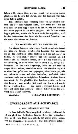 | Keywords: Zwergsagen aus Schwaben (Birlinger) 1.jpg Zwergsagen aus Schwaben Birlinger _ jpg 2 Zwergsagen aus Schwaben Aus Zeitschrift für Deutsche Mythologie und Sittenkunde Begründet von Dr J W Wolf Dritter Band S 167 “172 5QILAAAAQAAJ 1855 Anton Birlinger Author died more than 70 years ago - public domain PD-old De Wikisource book leaflet |