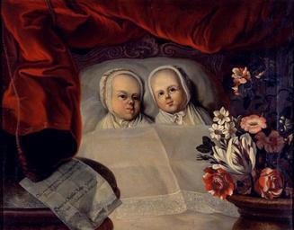 Keywords: Zwillinge Georg und Regula Rahn Zürich 1752.jpg Kinderbildnis zum Andenken an dieZwillinge Georg und Regula Rahn geb und gest 1752 Kinder des Chorherrn und Archidiakons Johann Rudolf Rahn 1712-1775 und der Anna Catharina Rahn geb Hess 1713-1781 1752 Oil on canvas cm 62 5 78 5 Schweizerisches Landesmuseum Zürich http //webcollection landesmuseen ch/ other versions PD-old-100 DEFAULTSORT 1752; Rahn children Paintings in Landesmuseum Zürich 1752 paintings in Switzerland 18th-century family portraits 18th-century oil portraits of children at full length Paintings of children 18th-century portrait paintings in Switzerland Paintings of babies Drapery in portrait paintings People of Zürich Portraits of siblings Portraits with 2 persons Portrait paintings of women with flowers Posthumous portraits Tassels in portrait paintings Twins in art Vases in portrait paintings 1750s portrait paintings |